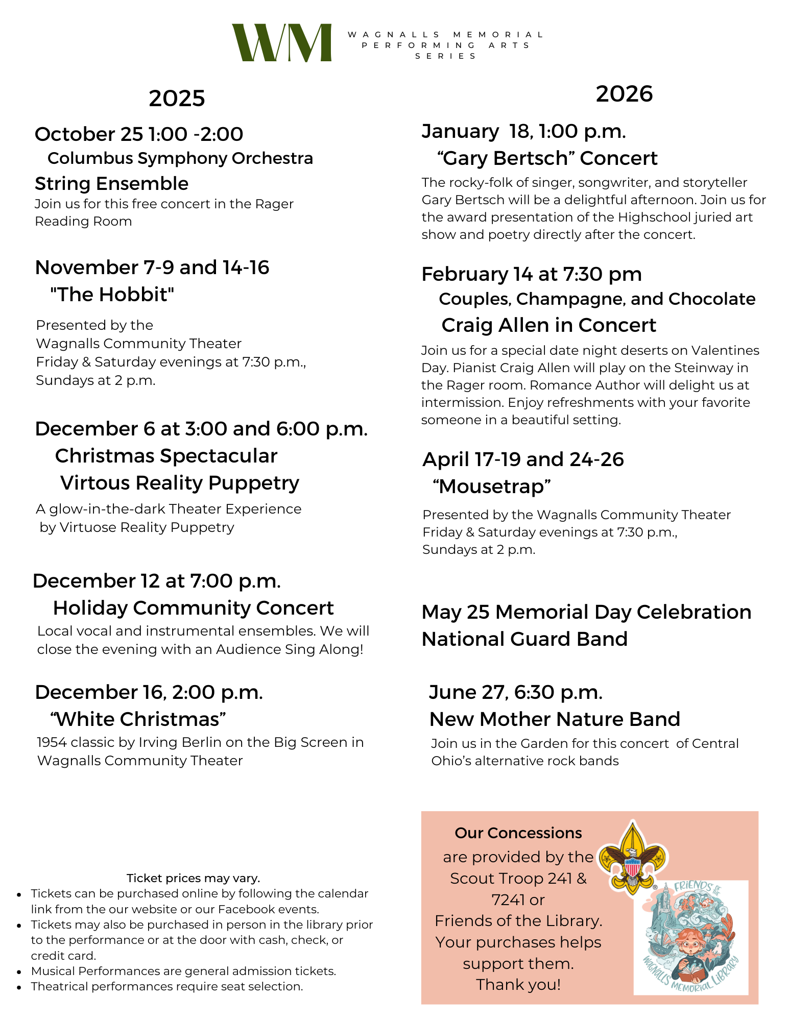 The Wagnalls Memorial was delighted to present an annual performing arts series that was once produced the by the